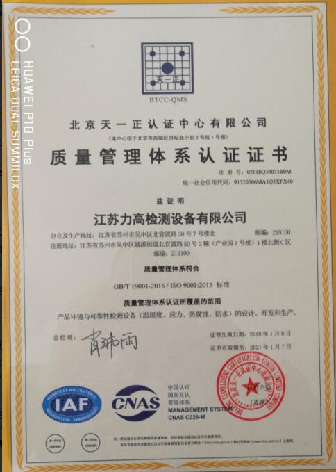 江蘇力高檢測(cè)設(shè)備憑借一貫的高標(biāo)準(zhǔn)、嚴(yán)要求、規(guī)范化生產(chǎn)管理及在生產(chǎn)實(shí)踐中結(jié)合國(guó)內(nèi)外先進(jìn)生產(chǎn)經(jīng)驗(yàn)所建立起來(lái)的完整、規(guī)范的生產(chǎn)體系,確保了企業(yè)生產(chǎn)的每一件產(chǎn)品都是高質(zhì)量,符合國(guó)家標(biāo)準(zhǔn)。在長(zhǎng)期的堅(jiān)守中,形成產(chǎn)品生產(chǎn)質(zhì)量規(guī)范化,順利通過(guò)了ISO9001國(guó)際質(zhì)量管理體系認(rèn)證。