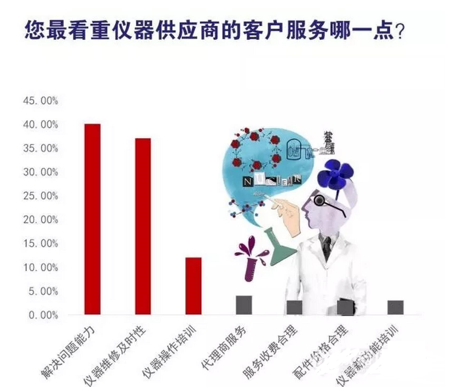 小編在前期調(diào)查中發(fā)現(xiàn),儀器用戶對于儀器供應(yīng)商售后的各項服務(wù)中,最看中的分別是解決問題的能力、儀器維修及時性及儀器操作培訓三點。
