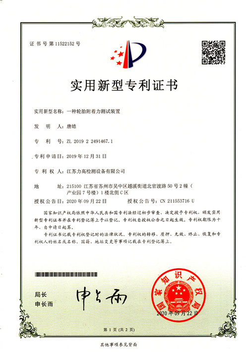 專(zhuān)利證書(shū)16(輪胎附著力測(cè)試裝置)