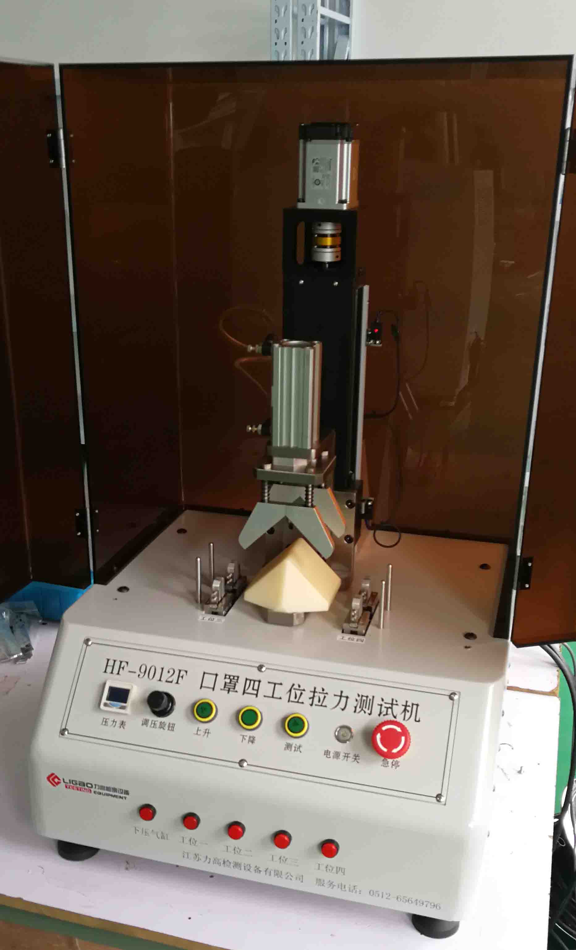 主要針對(duì)口罩的耳線焊接拉力,四工位可同時(shí)測(cè)試。3M(中國(guó))有限公司N95口罩指定設(shè)備。